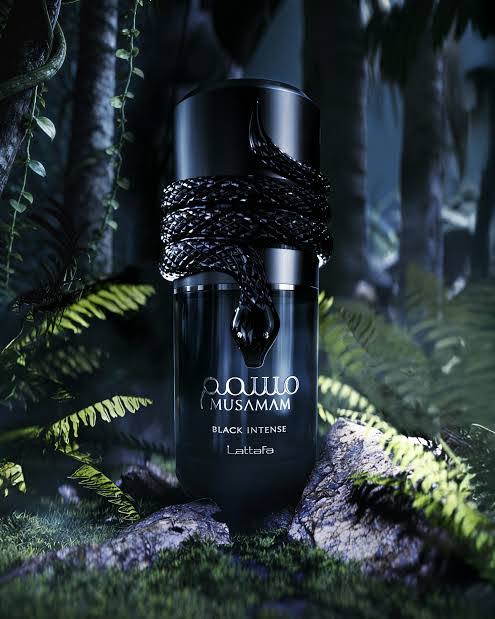 Musamam Black Intense di Lattafa Perfumes è una fragranza del gruppo Legnoso Aromatico unisex. È una nuova fragranza. Musamam Black Intense è stato lanciato sul mercato nel 2025. Il Naso di questa fragranza è Jordi Fernández. Le note di testa sono Noce Moscata, Lavanda, Salvia e Bergamotto; le note di cuore sono Legno di Cedro, Rosyfolia, Geranio e Mahonial; le note di base sono Cocoapulse™, Fava Tonka, Acero, Ambrofix™ e Patchouli.